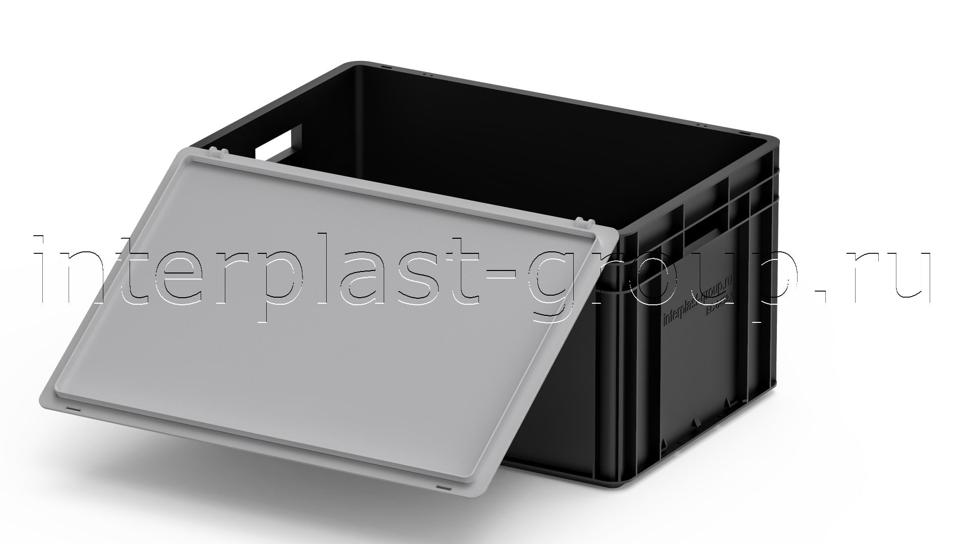Евроконтейнер открытые ручки/усиленное дно (черный), 600x400x320 мм